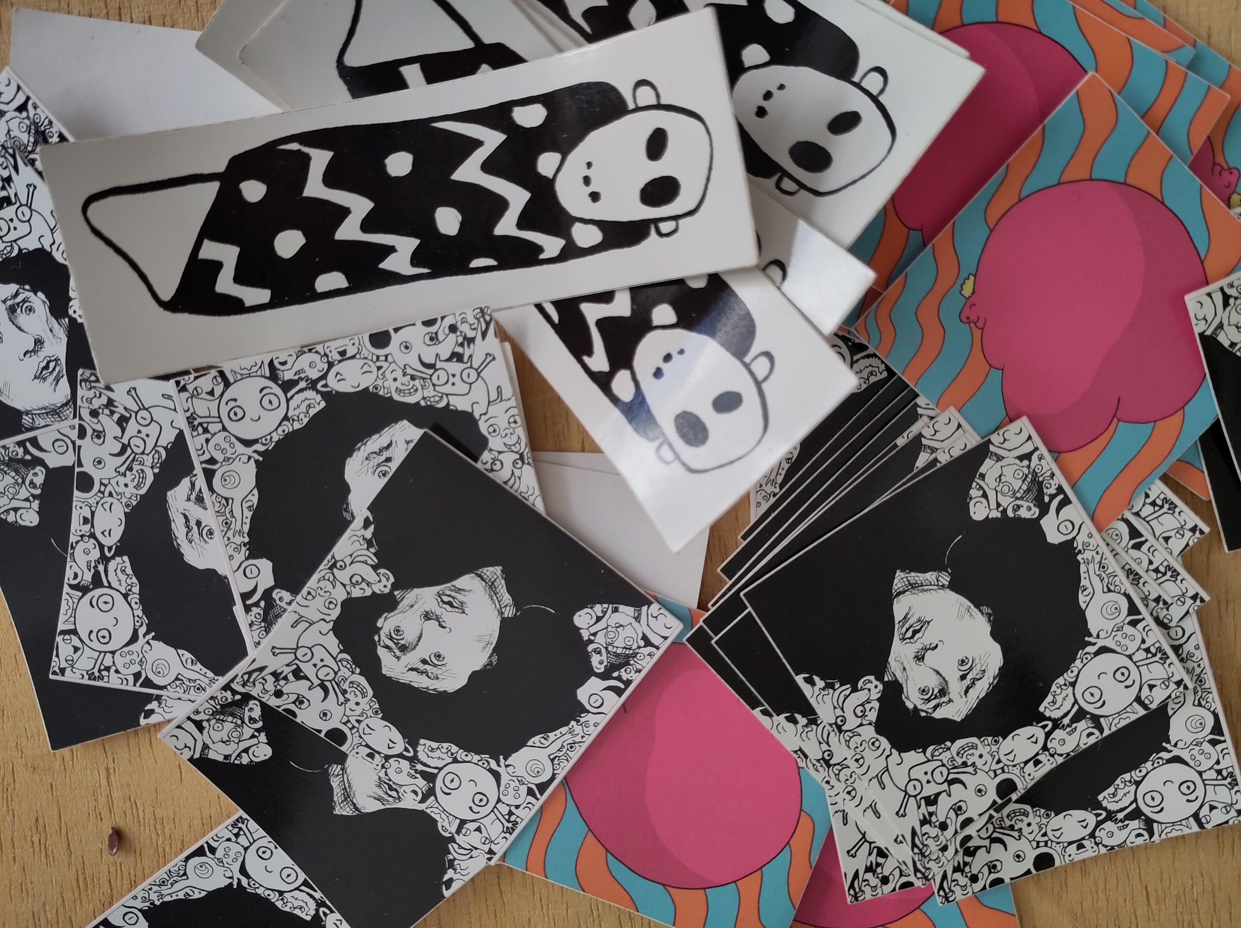 Illustration Comic RIICH Night Stray Der Wurzelstock Future Fix : Slap Me Baby zine #4 Cover Slap Me Baby zine #3 Strapazin NO:137 – Olivia Heussler Frühling Sticker Sticker Ausgewählte Zeichnungen
